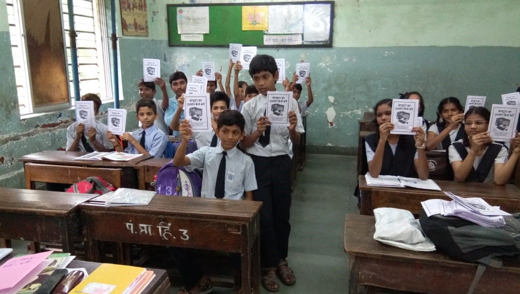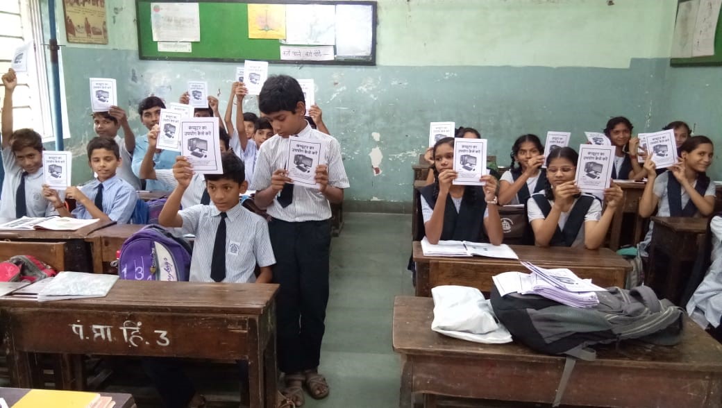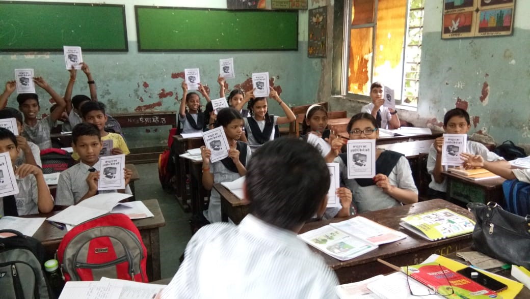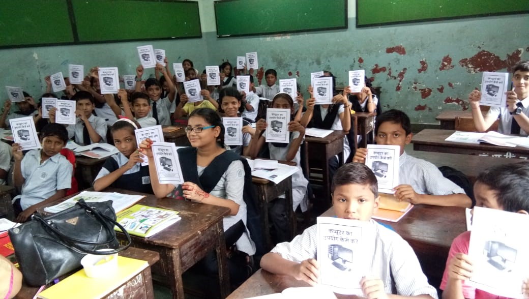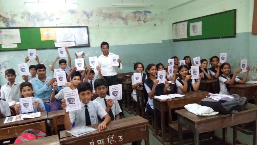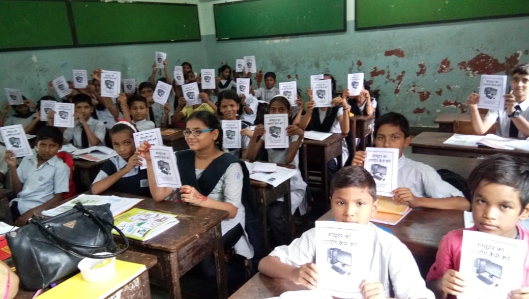 Jaiv Doshi and Dia Foundation volunteer’s distributing and educating students at Pantnagar Municipal School #1